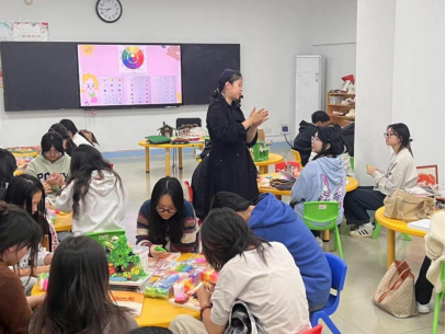 这堂课旨在提高学生对幼儿手工制作技巧的提高,丰富学生的艺术创造力和动手能力。闫婷老师首先讲述非遗传承人杨海峰的故事,从传统泥塑引入学前教育手工泥塑课程当中,把中华民族传统文化带入课堂,让非遗文化进校园。然后向同学们详细介绍了幼儿手工制作的意义和目标。她强调手工制作能够培养幼儿的细致观察力、创造力和动手能力,激发他们的想象力和艺术天赋。接着,闫婷老师根据幼儿的年龄和发展特点,选择了两个简单而有趣的手工制作项目——超轻黏土贴画、超轻黏土雕塑。