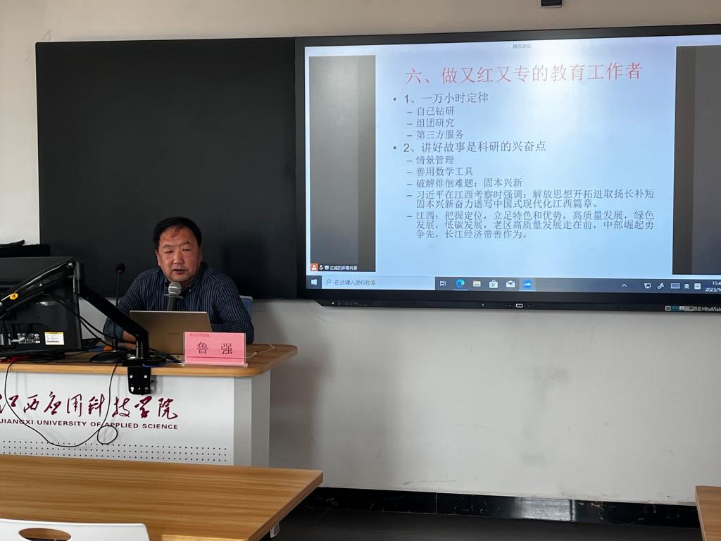 为进一步提高教师教学科研能力,提升教师课堂教学和业务水平,促进教师专业化发展,10月31日,现代管理学院邀请东华理工大学经济与管理学院鲁强教授为学院全体教师作教学与科研能力提升专题培训,学院全体教师参加培训。