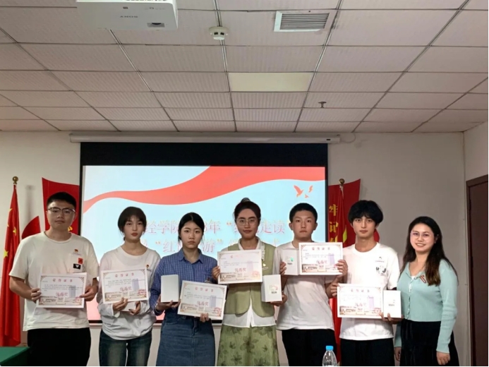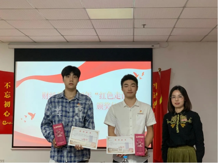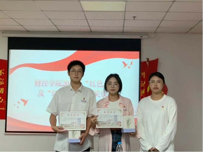 随后,由财经学院党总支书记何难绝书记、财经学院党总支宣传委员骆晓玉老师、财经学院党总支专职组织员秦梦丝老师、财经学院学生支部组织委员席群丽老师为获奖同学颁奖并合影留念。