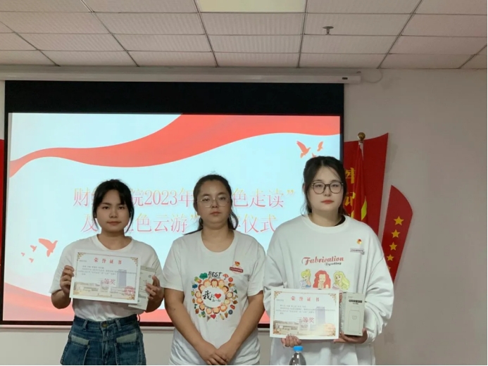 为深入学习贯彻党的二十大精神,深化“强国复兴有我”群众性主题宣传教育活动,鼓励我院学生深刻把握红色资源的思想内涵和时代价值,积极组织青年大学生自行组建团队,于2023年11月2日在综合大楼211举行财经学院2023年“红色走读”及“红色云游”竞赛颁奖仪式,共计评选出12个优秀作品。出席本场仪式的有财经学院党总支书记何难绝、财经学院党总支专职组织员秦梦丝、财经学院党总支宣传委员骆晓玉、财经学院学生支部组织委员席群丽及获奖学生。颁奖仪式由财经学院学生党支部书记吴宜安主持。