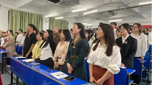 为了做好入党积极分子的培训工作,进一步增强大学生的责任意识,端正入党动机,坚定共产主义的理想信念,在校党委的统一部署、学院分党校的认真筹备与组织下,2023年10月31日下午5时财经学院在三达楼阶梯六教室举行财经学院分党校第27期入党积极分子开班仪式,参与人员有:财经学院党总支书记何难绝、财经学院学工科科长赵贺贺、财经学院办公室主任骆晓玉、财经学院专职组织员秦梦丝、财经学院学生支部书记吴宜安、财经学院教工支部书记黄漂、财经学院全体师生党员、财经学院27期入党积极分子培训班全体学员及机关党支部27期入党积极分子。本次开班仪式由秦梦丝老师主持。