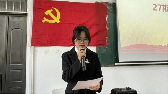 27期入党积极分子钟怡在发言中表示:党的百年奋斗史就是一部为人民谋幸福的历史,一部践行党的初心使命的历史。我们有幸参加此次党课培训,一定要珍惜这来之不易的机会,从思想上认识党课的重要性,在以后的学习生活中我们要蓬勃向上,意气风发,紧密团结在党的周围,向党组织靠拢。以党的信念为我们的思想明灯,以党的原则为我们的行为准则,努力克服自己的缺点,加强理论学习和专业素质的培养,做21世纪永远跟党走的新青年!
