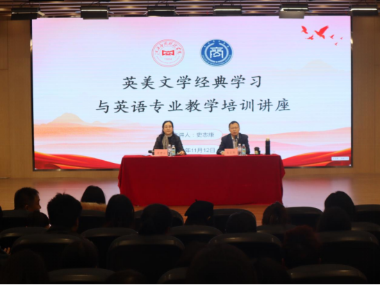 为增强我院商务英语专业学生学习英语的兴趣、掌握科学的学习方法、提升英语学习能力、促进优良学风,同时开阔我院教师及学生的学术视野,2023年11月12日上午9时,国际商务学院特别邀请上海外国语大学教授、博士生导师史志康教授前来必赢官网行知楼辰林音乐厅召开英美文学经典学习与英语专业教学培训讲座。