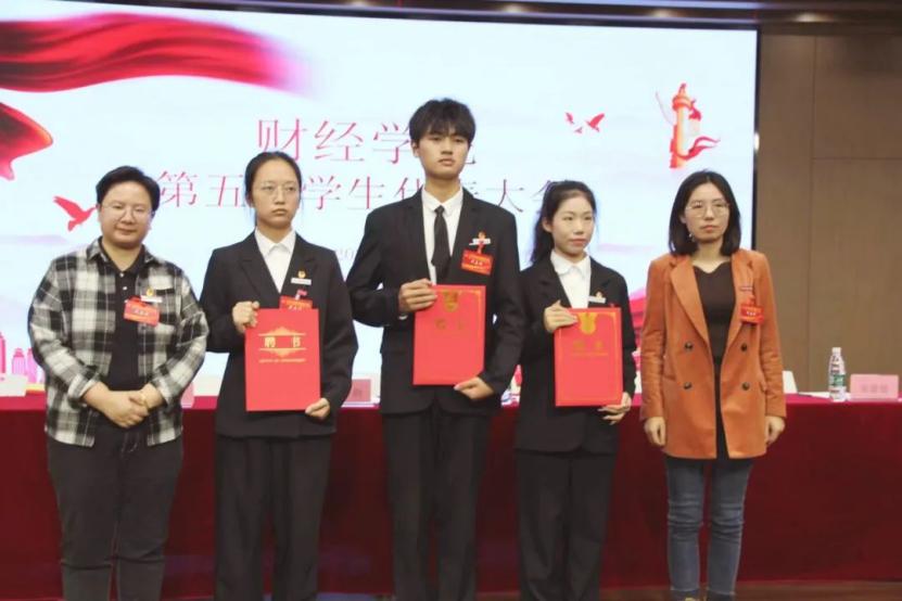 校团委书记张荆宣读《关于同意召开财经学院第五次学生代表大会的批复》并发表讲话。