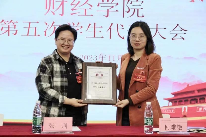 10校团委张荆书记和财经学院党总支何难绝书记为主席团成员颁发聘书