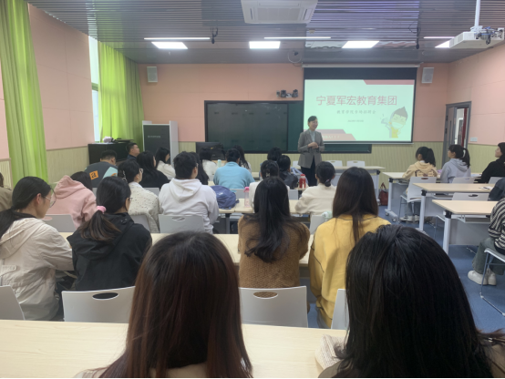 接着,张校长分别详细介绍了集团下属机构:石嘴山市第二十一中学、宁夏军宏技工学校、银川市兴庆区中瀛御景幼儿园、大武口区宏德幼儿园、宁夏军宏职业技能培训学校、固原精诚职业技能培训学校、石嘴山市宏泰职业技能培训学校,从行业认知及发展趋势人才需要及培养、就业指导等方面为参会学生生动形象了介绍了教育行业及人才培养相关内容,并结合目前面临的行业背景和机遇,勉励同学。在提问互动环节中,学生们从去向选择、薪资待遇、晋升渠道等方面积极提问,互动氛围轻松愉悦,参会学生纷纷表示干货十足、收获颇丰。