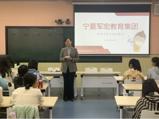 为做好教育学院2024届毕业生就业工作,努力实现2024届毕业生更加充分更高质量就业,11月10日,教育学院在志远楼205举办2024届毕业生未就业学生专场招聘会,宁夏军宏教育集团代表、教育学院院长郑昌保、毕业生辅导员代表及2024届未就业全体毕业生参加此次会议。