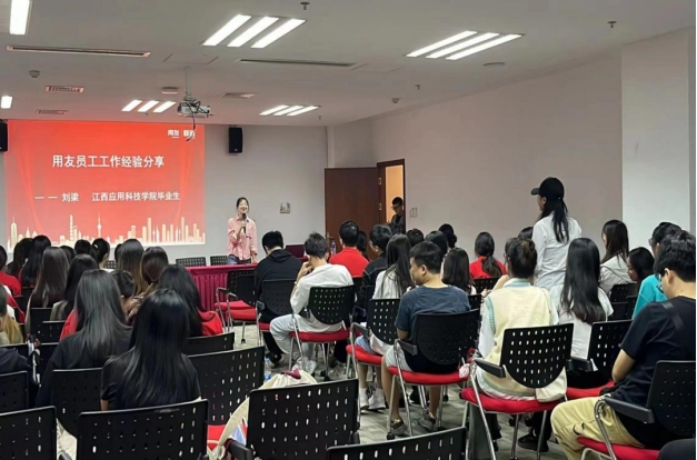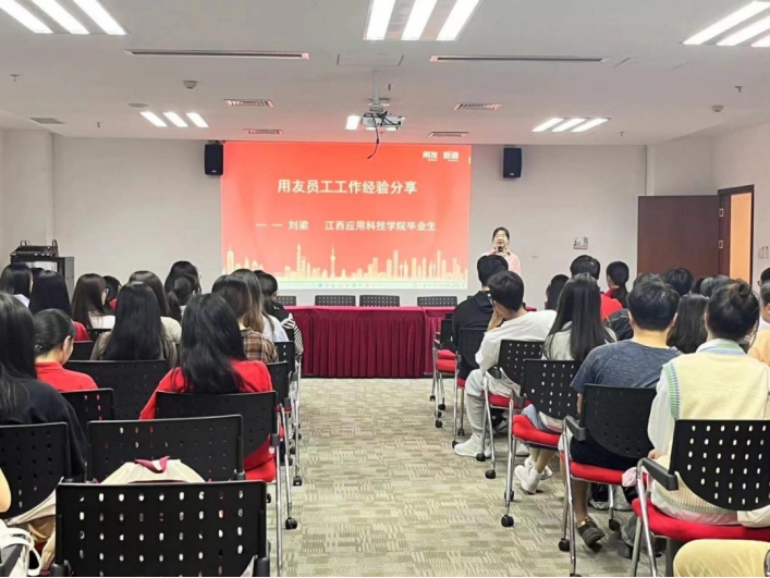 首先,是用友员工工作经验分享的环节。大学毕业前的工作经验和简历制作技巧对同学们的职业发展和就业前景有着重要的积极影响。刘梁同时作为72886必赢网站毕业生和用友员工与同学们分享了宝贵的工作经验。她作为一名远程交付的员工,谈到与客户对接时要进行客户需求分析。在税务工作中,她经常与客户进行会议和沟通,以了解他们的具体需求。只有通过深入的需求调研和分析,才能够准确把握客户的需求并提供相应的解决方案。在这个过程中,她学会了如何倾听客户的需求,分析问题并提供符合客户需求的解决方案。关于产品与客户进行产品应用培训,除了了解客户需求,她还负责为客户提供产品应用培训。她会针对客户的具体情况,设计培训内容,并通过有效的培训方式,帮助客户掌握产品的使用技巧和注意事项。通过这些培训,客户能够更好地理解税务产品的功能和使用方法,提高工作效率。其次要与客户沟通,在税务工作中,与客户的沟通是非常重要的一环。她通常需要花费1到2周的时间与客户进行深入的沟通和培训,以确保他们能够充分理解产品的应用方法和技巧。通过这些沟通和培训,她建立了良好的客户关系,并在工作中取得了良好的成绩。刘梁谈到公司氛围,她说公司氛围非常好,这种良好的氛围对于工作效率和团队合作起到了积极的促进作用。她在这样的氛围中工作,不仅能够更好地发挥自己的潜力,也能够更好地与同事合作,共同完成工作任务。