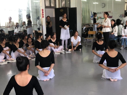 朱小媚老师通过回顾上节课的内容进行课程导入,检查学生在上一节课程中学习的地面训练组合——《外开练习组合》《勾绷脚组合》《地面吸腿组合》《大踢腿组合》的练习掌握情况。公开课运用了新颖的教学方式,寓教于乐,让同学们在快乐的环境中,通过舞蹈艺术获得智力的开拓,为培养少儿的高尚品德、集体荣誉感、纪律观念等起到潜移默化的作用。让同学们在欢乐的学习中体验舞蹈艺术的魅力,培养大家良好的乐感和律动,发展艺术天性,从而造就健康的体魄,高尚的艺术素养。