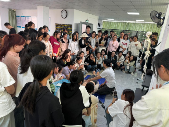 本次大学生急救技能大赛共有150余名学生踊跃报名参与。赛前,裴春敏老师通过多媒体视频及现场亲自实操为学生们就心肺复苏的具体操作及细节进行分班培训指导。