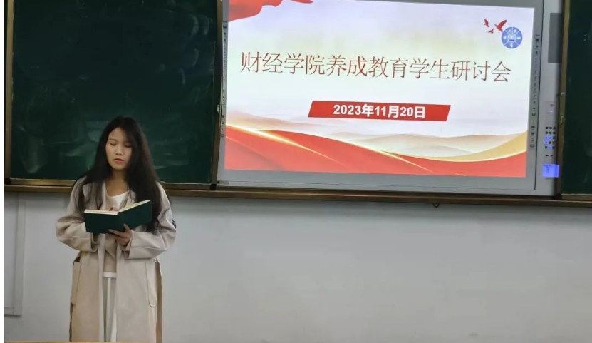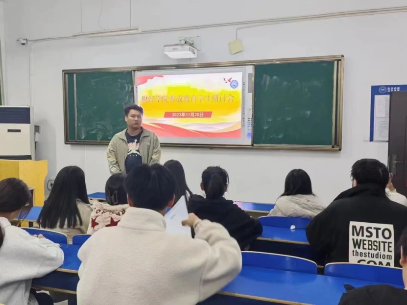 财经学院于2023年11月20日在行知楼120教室召开养成教育学生研讨会,此次会议参加人员有养成教育干事及各班级负责人。