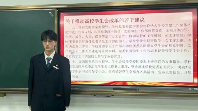 学生会宣讲团对学生会的组成以及基本情况的介绍,带领学生们深入了解其章程,怀鸿鹄之志,展骐骥之光。