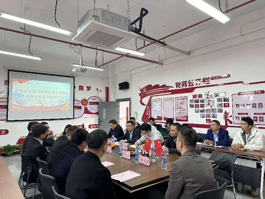 26日上午,学院产教融合发展论坛—产教融合发展建设研讨会在学院会议室召开。联系学院工作的副校长张敏,江西鑫瑞建设工程有限公司总经理康剑华、上海天华建筑设计有限公司高级工程师王辉、新大陆科技集团高级工程师葛斌斌、南昌富佑多科技有限公司联合创始人林泽伟等企业专家出席研讨会,研讨会由学院院长杨志刚主持。