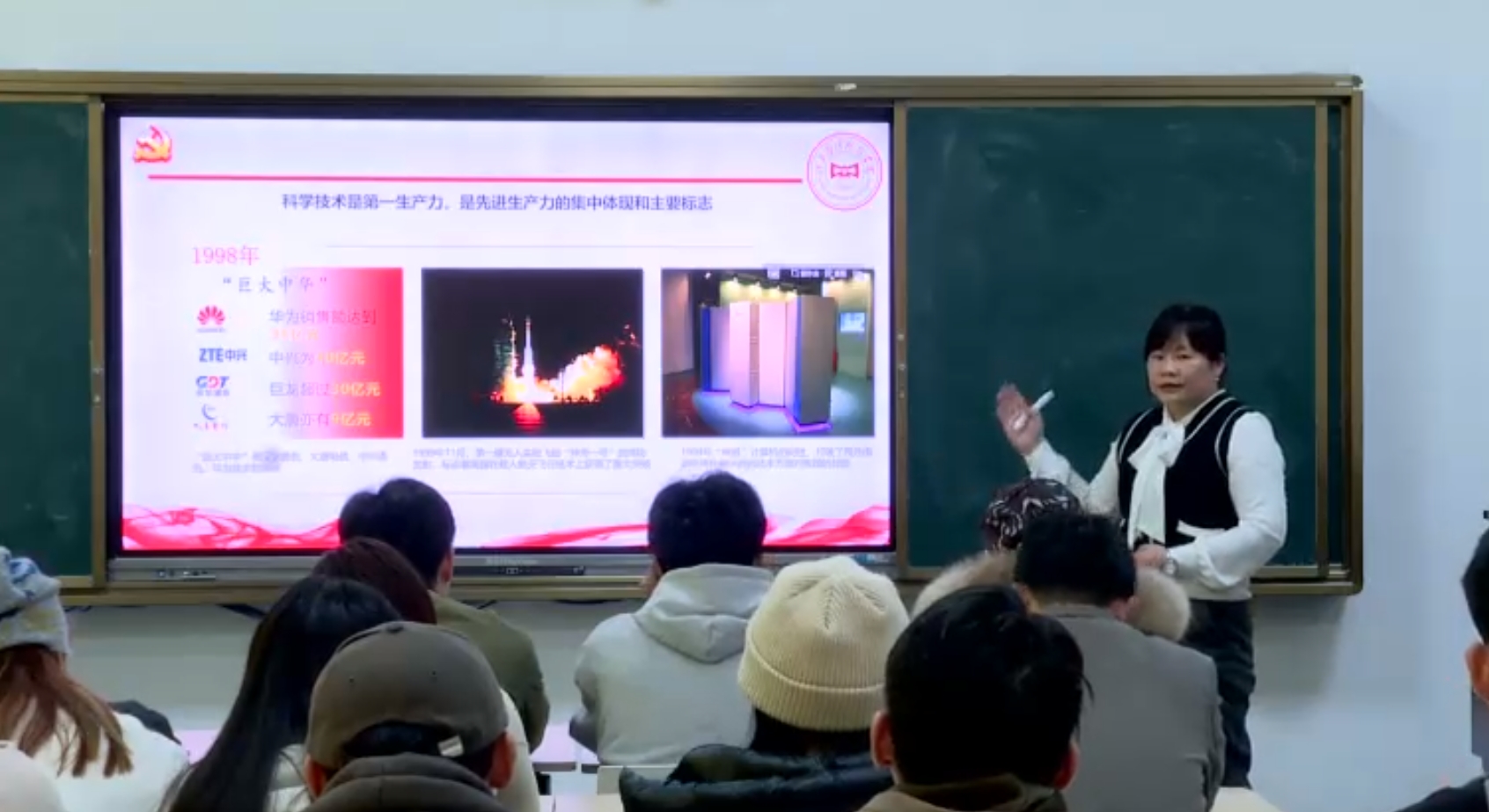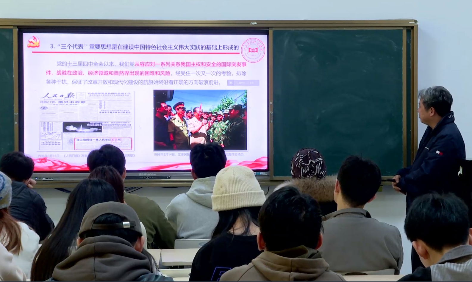 本次“双师同堂”教学依托本学期开设本课程的21级本科表演3班课堂教学展开。在简单介绍后,由徐教授就《“三个代表”重要思想产生的社会历史条件》此问题展开讲授,徐教授结合自身专业及生活经历,将“三个代表”重要思想产生的历史背景进行了具有理论深度的展示。紧接着助讲教师刘明钰老师将接下来的内容进行讲解,将 “三个代表”的主要内容从理论的延续性、对中国新世纪发展的重要意义进行讲解。课后,学生踊跃的与徐教授进行了交流。