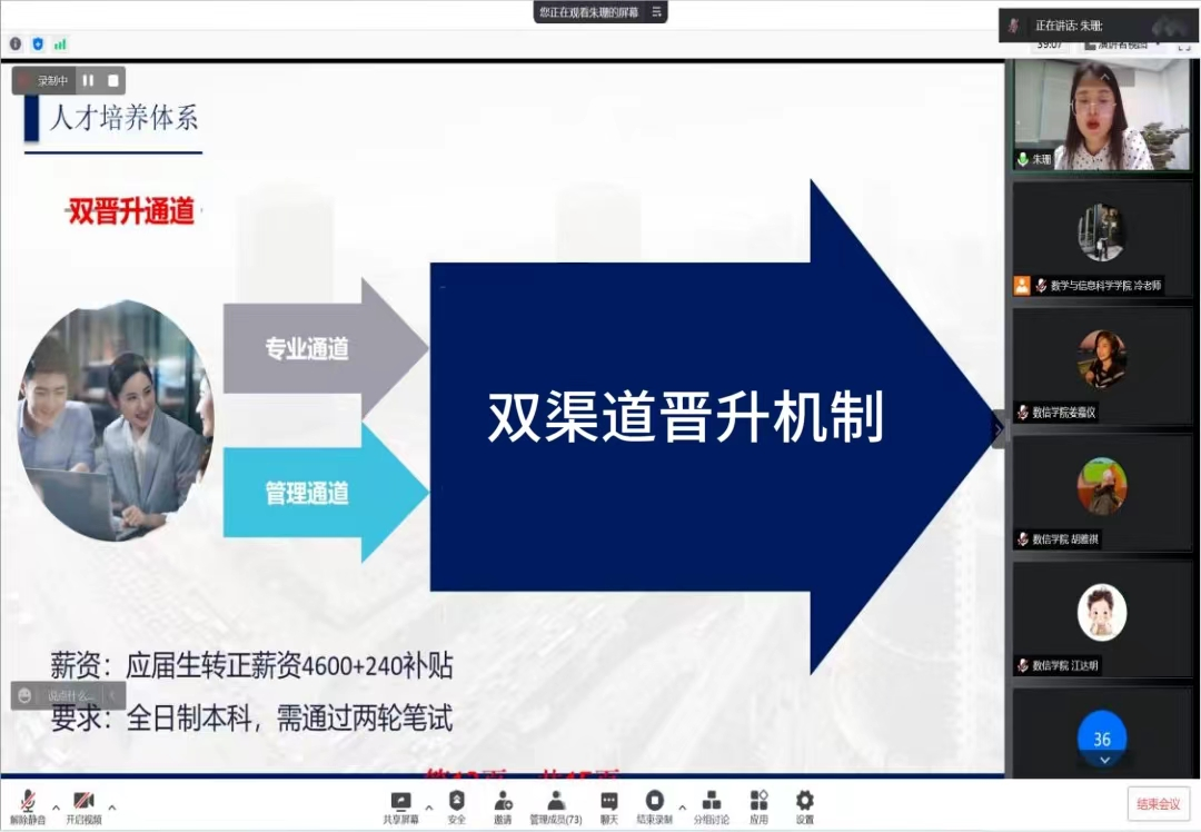 为促进学院毕业生高质量就业,充分发挥校园招聘主渠道作用,2023年11月13日,软件与区块链学院开展线上专场云招聘。软件与区块链学院毕业班辅导员及我院2024届毕业生共近500余人参加此次招聘会。
