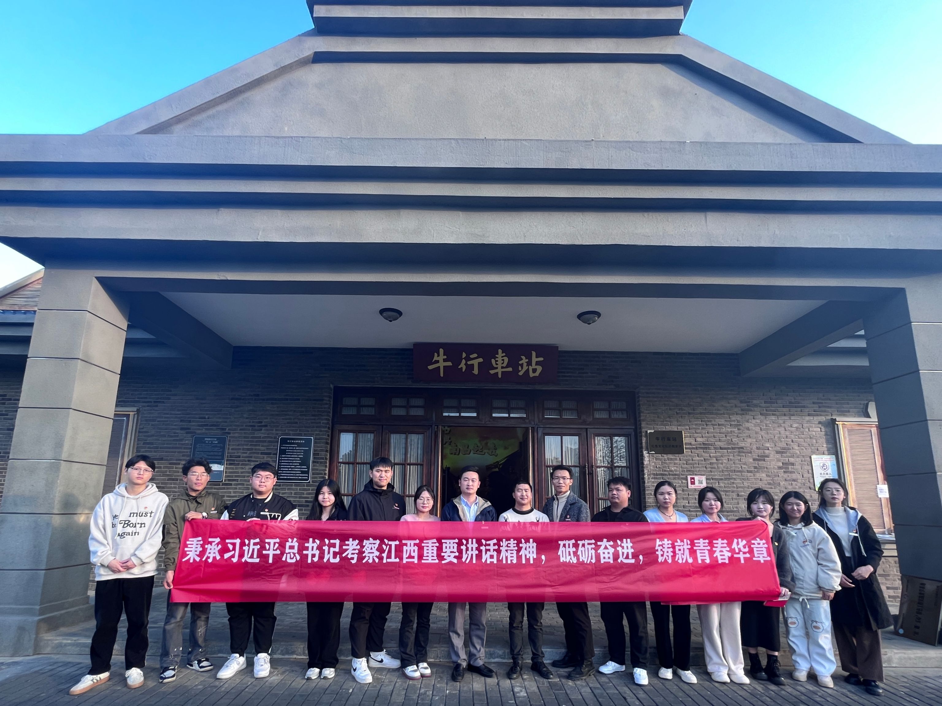 随后,全体党员代表前往牛行车站与南昌起义展览馆参观学习。牛行车站是南昌起义的一个标志性地点,学生党员们参观车站内的纪念展览,跟随着讲解员从“南浔铁路 百年沧桑”、“起义部队 挺进南昌”、“南昌起义 牛行战斗”、“红一军团 八一示威”四个主题,了解牛行车站和南昌起义的背景、过程和意义。通过实地参观和学习,他们将更加深入地了解中国共产党早期革命斗争的艰辛历程,增强对革命先烈们的敬意和对党的历史的认同。