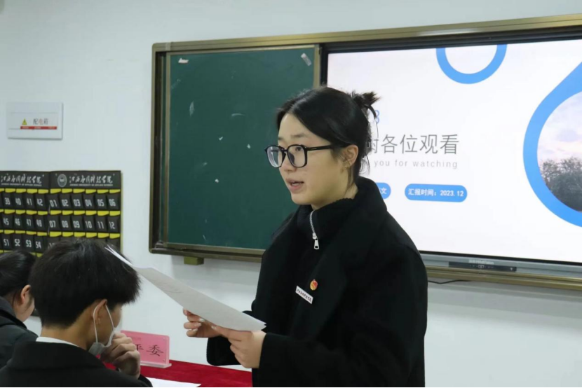 为了加强优秀班集体建设,建立健全考核机制的重要步骤和举措,回顾过去半年里各位班长在担任职务期间的表现,并对各位班长的工作给予考核、肯定和激励,同时为新一年的工作做出全新的规划和目标,2023年12月19日晚,财经学院在行知楼317、319召开2023-2024学年第一学期班长年终述职大会。参与本次大会的人员有:财经学院团总支副书记吴宜安,财经学院专职辅导员龚云、吴敏思及我院在校班级的班长。