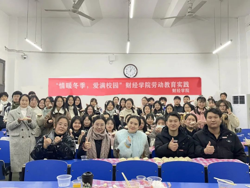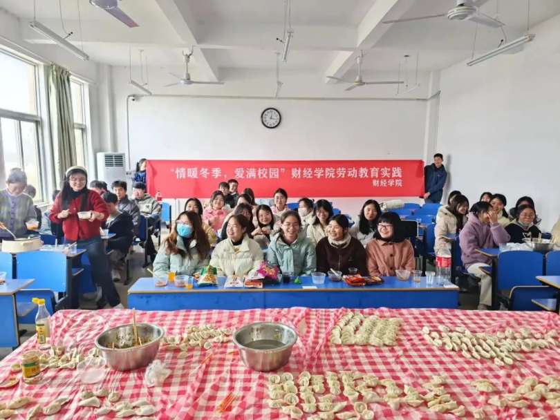 为锻炼学生劳动技能,提升学生劳动水平,丰富学生的校园生活,让同学们感受到冬季的温暖,财经学院于12月19—20号在行知楼开展了劳动教育实践活动——包饺子。