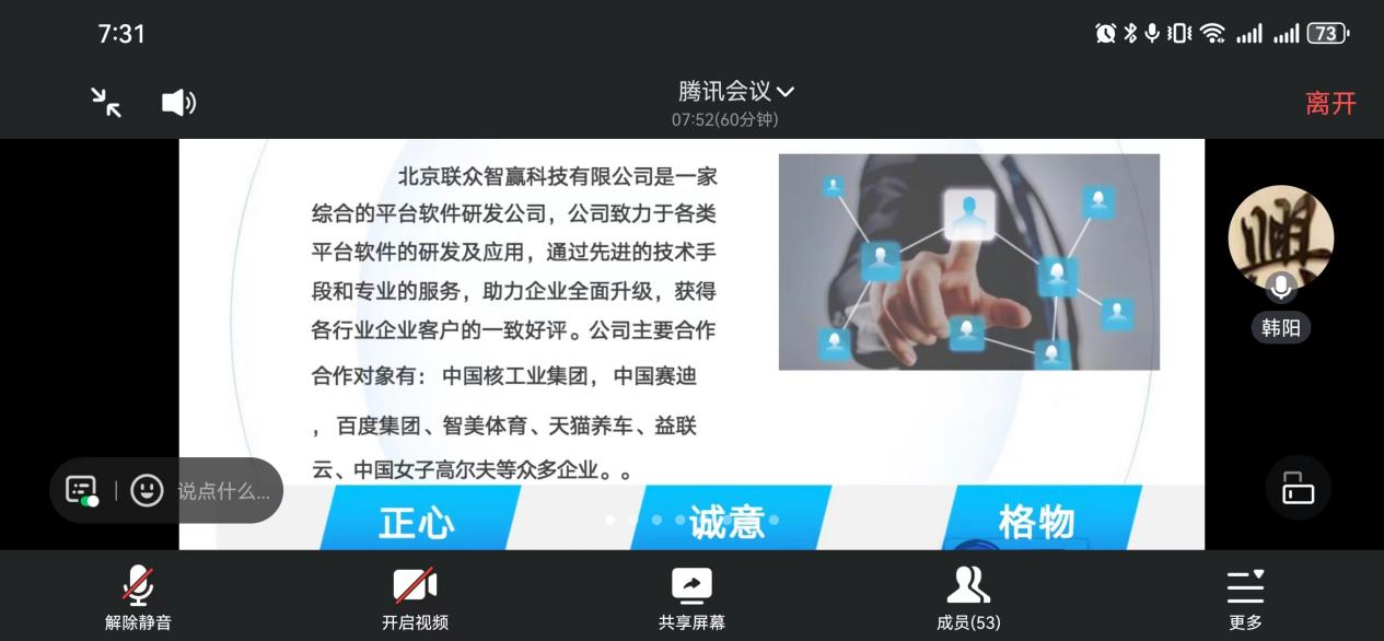 软件与区块链学院于2023年12月26日晚召开北京联众智赢科技有限公司线上专场招聘宣讲会,此次线上宣讲会的顺利召开,为加强校企合作,进一步促进我院2024届毕业学生充分实习就业、高质量实习就业提供了坚实基础与有力支持。此次宣讲会旨在加强软件与区块链学院学子与北京联众智赢科技有限公司之间的了解与联系,使学生对北京联众智赢科技有限公司的人才需求和岗位素质要求有更进一步的认知和熟悉。