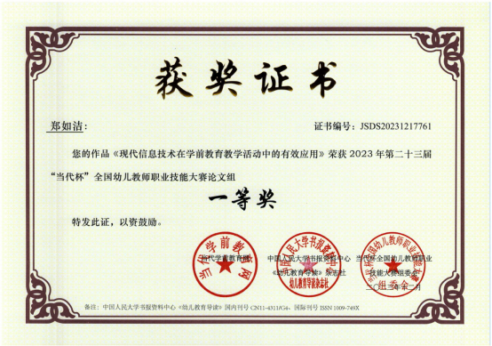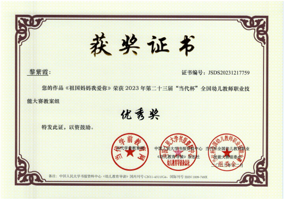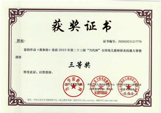 近日,由当代学前教育网、中国人民大学书报资料中心《幼儿教育导读》杂志社(中国幼教核心期刊,国内刊号CN 11-4311/G4、国际刊号ISSN 1009-749X)联合主办的第二十三届“当代杯”全国幼儿教师职业技能大赛获奖名单揭晓,学院学前教育专业学生分别参加了环境创设、教案、故事讲述、论文、课件比赛等项目,获得一等奖11项、二等奖17项、三等奖16项、优秀奖6项,学院获得先进单位。