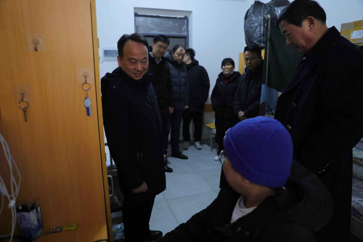 彭书记一行现场查看了学生宿舍住宿条件、设施配备等情况,详细询问他的家庭情况,了解他的实际困难,倾听他的真实诉求。还鼓励刘世龙同学自立自强,将眼前的困难转换为砥砺前行的动力,认真钻研,提高本领,积极阳光的度过大学时光。