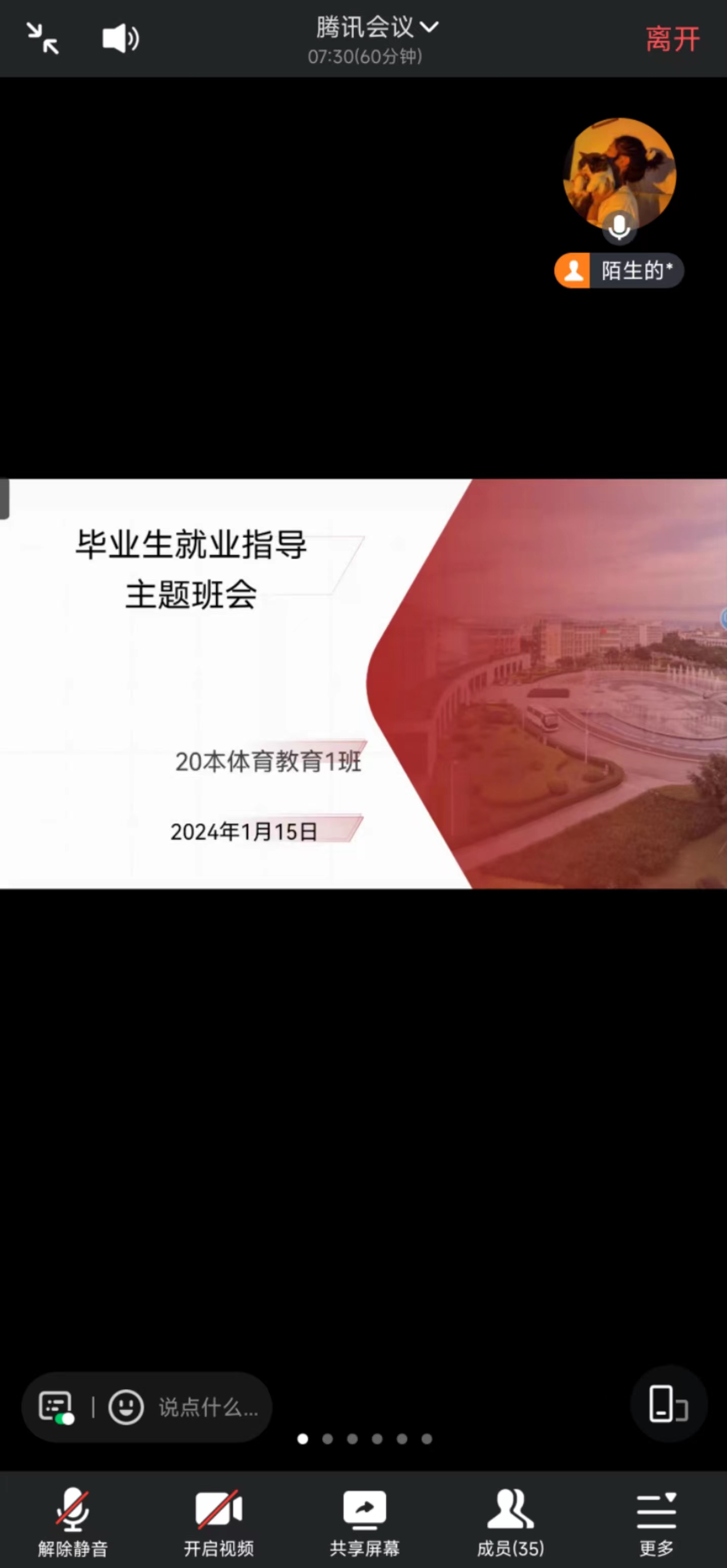 为帮助毕业生树立正确的就业观,让学生了解目前大学生就业现状及就业形势,2024年1月15日20级体教1班召开了毕业生就业引航主题班会。
