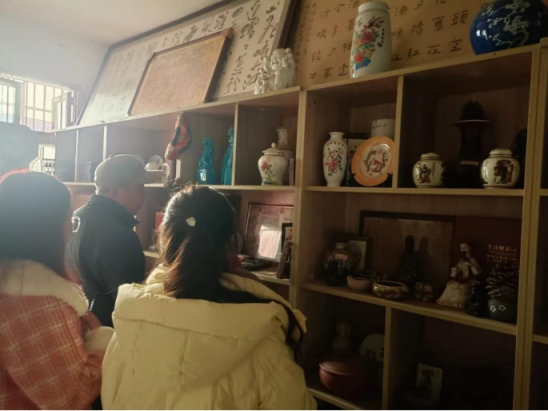 很快吴金瑶同学便展开志愿工作,前阶段的志愿工作是采访各乡村的杰出前辈并统计各村的杰出人才,此次吴金瑶同学同几位大学生志愿者们一起去采访了万户镇北汊村的吴德英爷爷,在吴德英爷爷身上吴金瑶同学真正感受到什么是活到老、学到老的精神,从采访得知吴德英爷爷很喜欢收藏,年龄虽已高,但心态非常好,会很热情地向志愿者们介绍很多收藏品,吴德英爷爷不仅虚心好学还多才多艺,他的画集、书法和诗词都出版过书籍。后续的志愿工作是统计各村的杰出人才,通过采用线上、线下挨家挨户登记填表。吴金瑶同学认为此次的志愿活动和她以往所参加的都不太一样,这次的返家乡志愿活动让吴金瑶同学能全力投入自己家乡的建设,更深入了解自己的家乡和自己家乡的人和事。