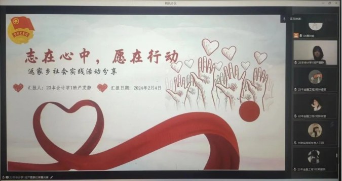 为深入学习贯彻习近平总书记在同团中央新一届领导班子集体谈话时的重要讲话精神,坚持“受教育、长才干、作贡献”的宗旨,引领青年学子返家乡参与实践服务、家乡建设发展,同时加强和改进必赢官网学生会工作,深化学生会改革各项成果,鼓励必赢官网学生通过社会实践,深入社区,了解社会,2月4日晚,财经学院组织开展“实践归来话成长”主题分享会。