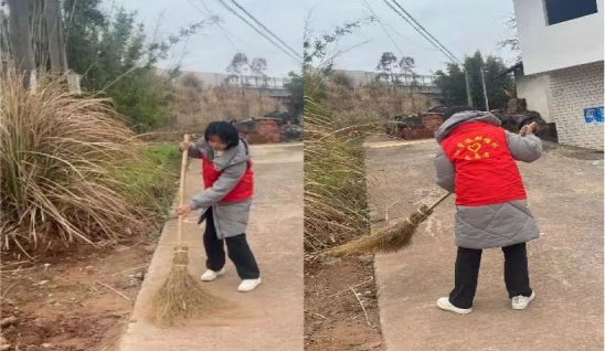 为努力提升村容村貌,加强村庄规划管理做贡献,2024年1月,来自22本会计学3班的第27期入党积极分子蔡琪在江西省赣州市兴国县江背镇郑塘村村委会开展“返家乡”社会实践活动,新年即将来临,新年新气象,她在村委会的组织下拿起清扫工具对村道进行清扫,放眼农村,干净的人居环境和良好的生态环境日益增长成美好生活需要的重要内容,她积极参与清扫,擦亮乡村振兴底色,让清洁文明的意识入脑入心。