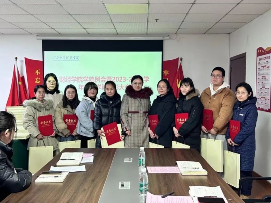 为了表彰2023—2024年第一学期辛勤付出的老师们和迎接新学期的到来,财经学院于2024年2月26日在综合大楼211举办新学期例会暨表彰大会。参会人员有副校长胥懋云、财经学院院长揭志锋、财经学院党总支书记何难绝、财经学院副院长漆圆方及财经学院全体教职工。