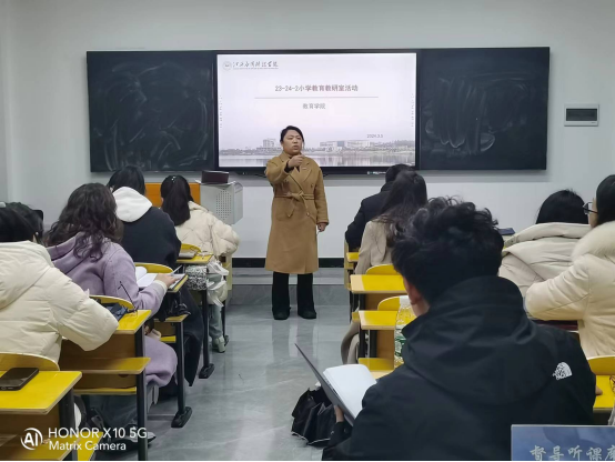 为进一步推动课程改革,提升课程教学质量,小学教育教研室于2024年3月5日举行了课程建设讨论活动。小学教育教研室路萍主任向教研室的专任教师分享了课程建设的相关内容,路主任主要从小学教育专业课程建设价值、课程建设情况、课程建设目标设置和课程建设实现途径四个维度探讨了小学教育专业课程建设的发展前景。