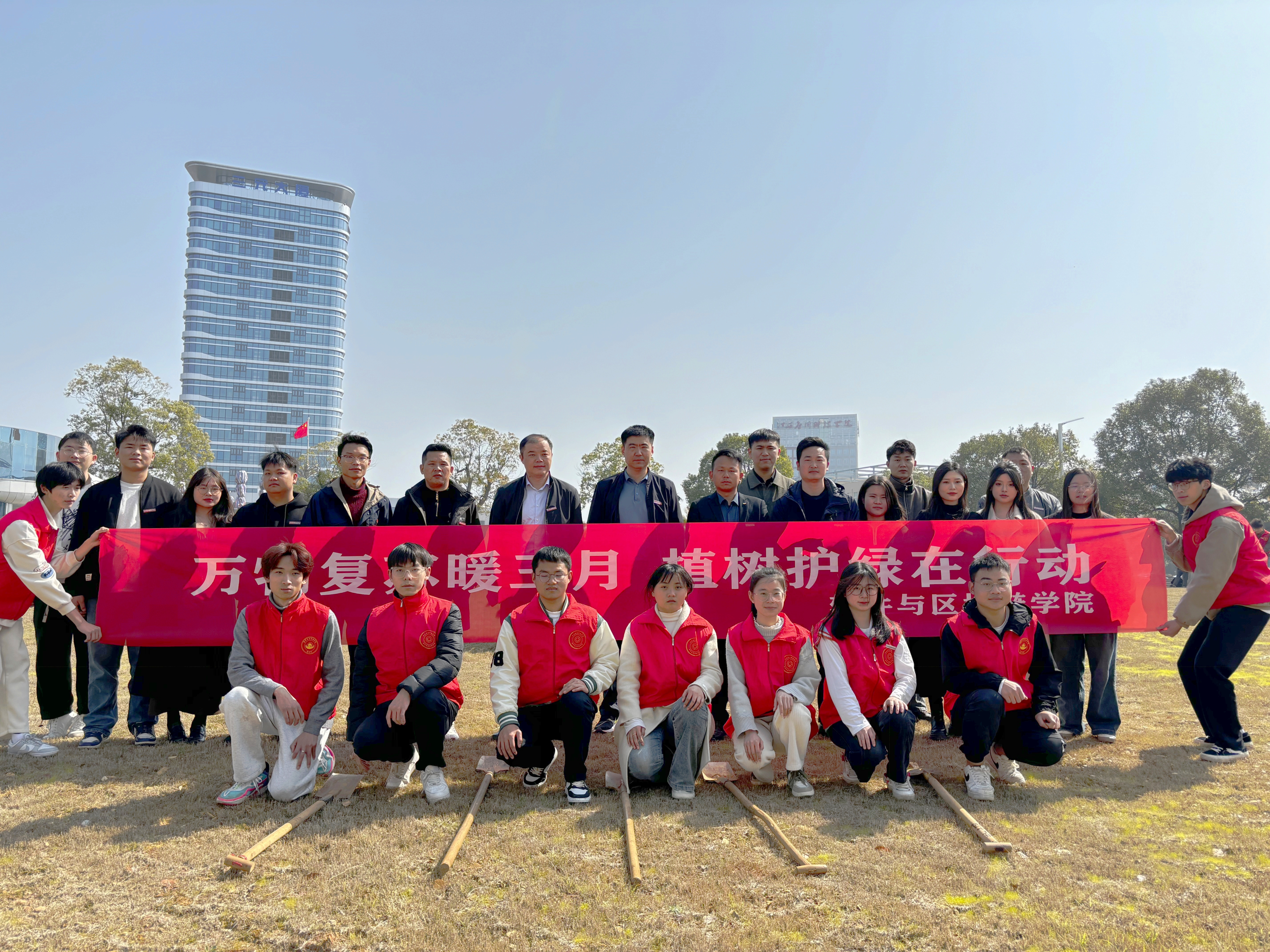 阳春三月,春回大地。3月11日上午,在全国第46个植树节到来之际,软件与区块链学院开展2024年义务植树活动。校党委副书记、纪委书记江星参加活动。