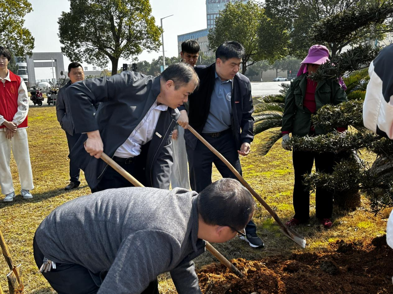 学院领导卞秀运、卢胜勇、韩阳、各科室负责人、全体辅导员及学生代表一同参加植树活动。