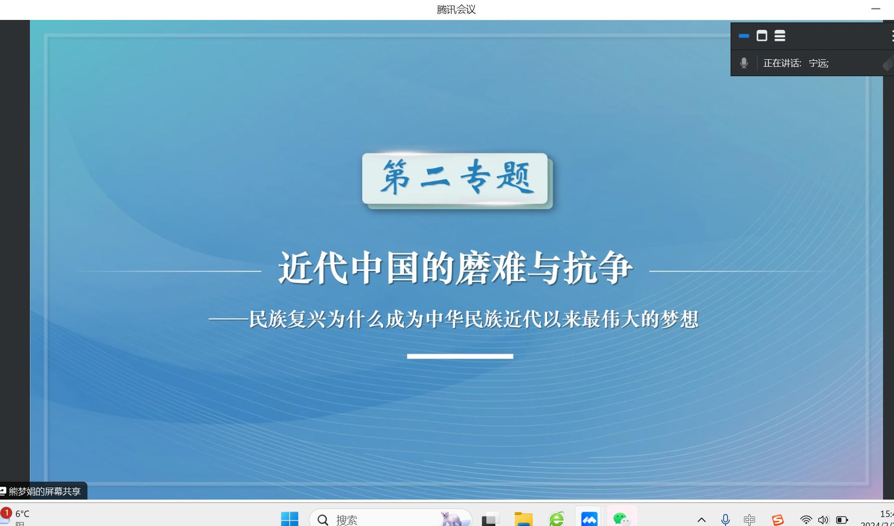 2月28日14:30,我院“中国近现代史教研室”在线上进行了2023—2024学年第二学期第一次集体备课会。集体备课会围绕《中国近现代史纲要》课程的专题一、专题二、专题三的教学内容展开。本次集体备课会由教研室主任王莉主持,本学期《中国近现代史纲要》课程的授课老师全部参加。