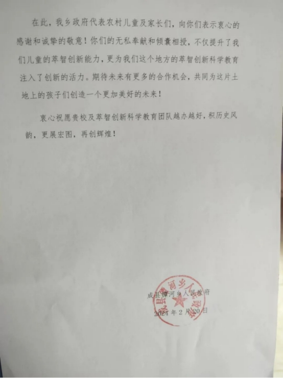 在本次返家乡实践活动中,侯媛媛得到了当地村委会及乡政府的支持。他们用感谢信的形式表达对侯媛媛的谢意。侯媛媛认为这一荣誉不仅是对她个人努力的肯定,更是对她为家乡做贡献的认可,她深感责任重大,表示将继续努力为家乡的发展贡献自己的力量。