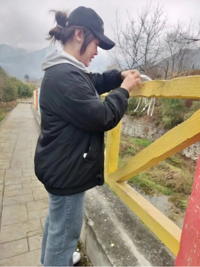 侯媛媛还随同村委会工作人员进行灯笼的悬挂及灯线的铺挂,一起打扫村委会周边的环境卫生,她在工作时认真仔细,把每个角落都打扫得干干净净,让自己的家乡焕然一新,重焕生机。侯媛媛所做的一切,就是为了让她的家乡在春节期间灯笼如繁星点点,点缀在屋檐下,闪烁温暖的光芒,照亮家乡的大街小巷。