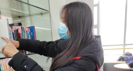 首先,她学会识别书籍标签上字幕分别归属于具体哪一书馆,再根据馆内书架标签与书籍字母对应,最终进行上架。上架完书籍后将与书架不符的书籍整理至对应书架,摆放整齐,便于读者查询借阅,在这个过程中她还学习如何对期刊进行编号,再通过编号将书籍放置对应的书架。