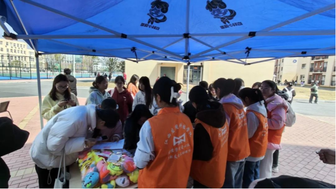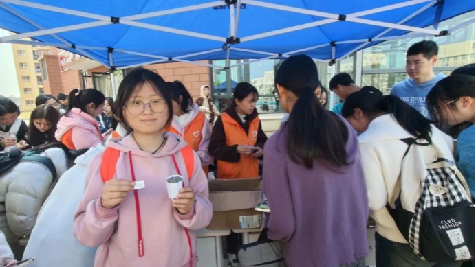 参与的志愿者们提前十分钟在第五食堂门口集合,集合完毕后志愿者们依次领取并穿好马甲,本次志愿服务活动采取知识竞答的形式,主要是为了帮助学生们对植树节有更深刻了解。