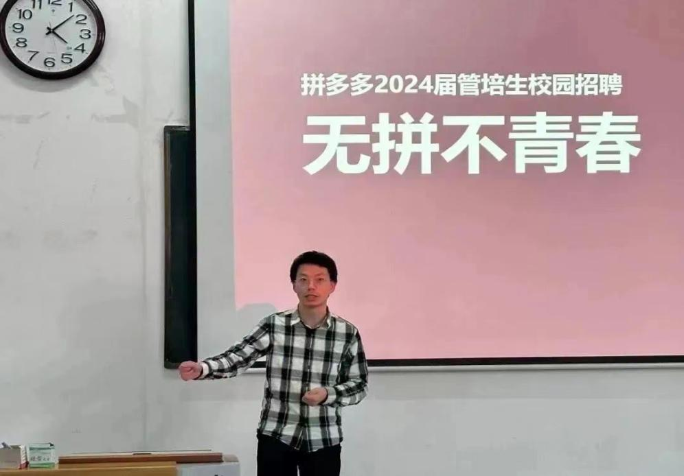 为促进国际商务学院毕业生高质量落实就业,通过当前就业市场及所学专业知识有更深入的了解,也为他们的职业生涯规划提供有益的指导和启示,2024年3月19日我院特邀请拼多多电商项目唐江宇老师来我院开展企业进校园巡讲就业育人活动。