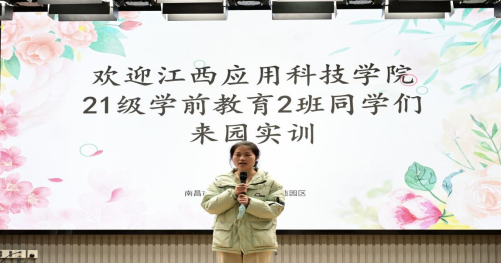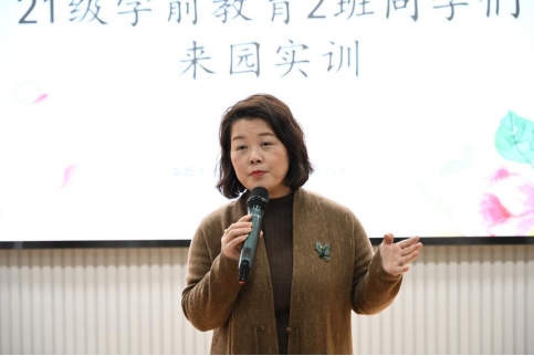 程晔园长热烈欢迎同学们的到来,表示此次走园实践教学有助于将课程学习融入职业、岗位和实践元素,促进学生从“学生”到“教师”的角色转变。