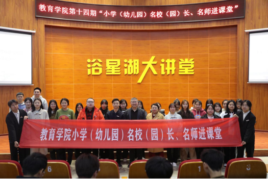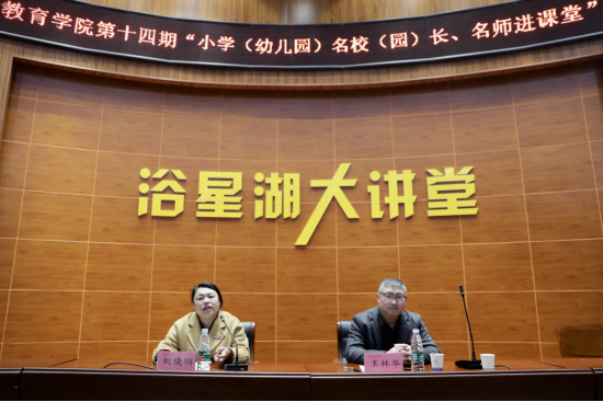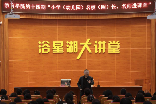 为进一步加强学院与小学(幼儿园)的交流与沟通,深化“院-园、院-校”协同育人机制,发挥名校(园)长、名师及其团队的教学引领与指导作用,强化学院师生对基层小学(幼儿园)师资需求和课堂教学改革的清醒认识,加深学生对小学(幼儿园)教师专业知识、专业技能和教育情怀的认识和理解,提升学生的责任意识和专业使命感,学院特此举办第十四期“小学(幼儿园)名校(园)长、名师进课堂”活动。3月21日,学院邀请到国家级基础教育教学成果一等奖获得者、国家级教学名师、江西省百千万人才工程人选、江西省小学综合实践活动学科带头人、吉安县君山小学正高二级教师王林华在浴星湖大讲堂为2021级、2022级小学教育专业的学生作了题为《新时代义务教育呼唤研究型教师》的专题讲座,讲座由学院副院长刘晓领主持。