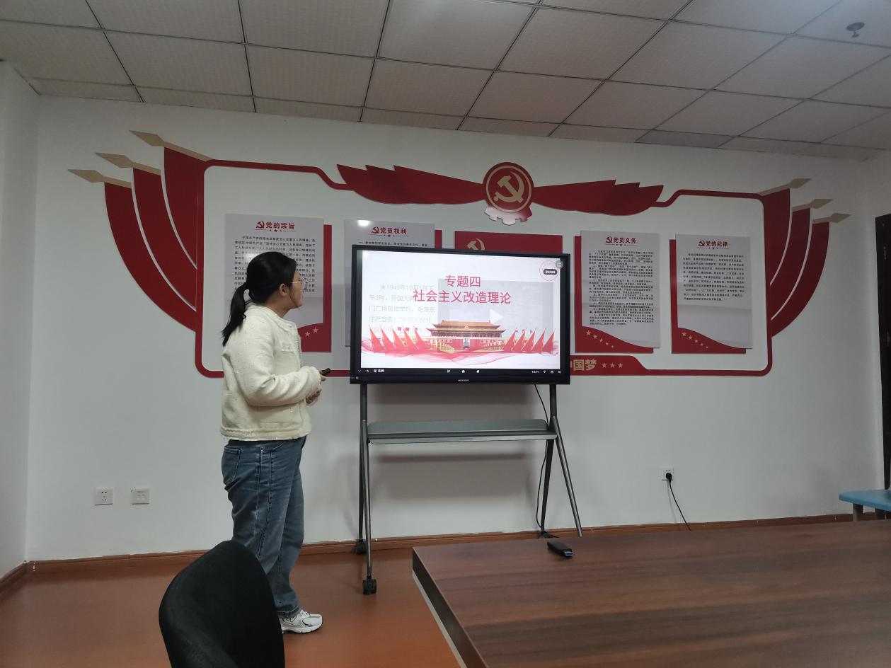 周红梅老师以《毛泽东思想和中国特色社会主义理论体系概论》中的“社会主义改造理论”为案例,介绍了新民主主义社会的性质,并且通过“一化三改”,正式在中国建立了社会主义制度,我国也进入了社会主义初级阶段。付云娇老师点评,章老师理论功底深厚,能够用简单明了的语言将复杂的理论解释清楚,但由于经验不足,存在紧张的情况,影响了教学效果,建议加强备课及台下练习。