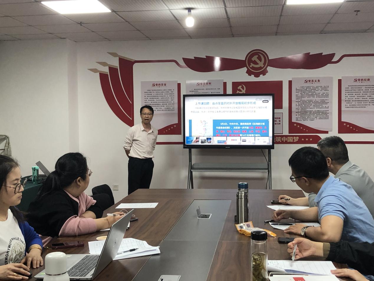 王忠涌老师以“四史”中的“改革开放史”为案例,讲解了中国改革开放的历程、前后对比、所取得的成绩、遇到的难题及解决方案。比如在改革开放初期,关于计划经济和市场经济的性质争论激烈,有人把计划经济和社会主义划等号、市场经济和资本主义划等号,而我们最终建立了社会主义市场经济体制,圆满解决了该问题。胡杏根副院长点评,王老师讲课风趣幽默,课堂气氛良好,但要注意教态、讲课语言的规范,要尽量使用书面化语言进行授课。