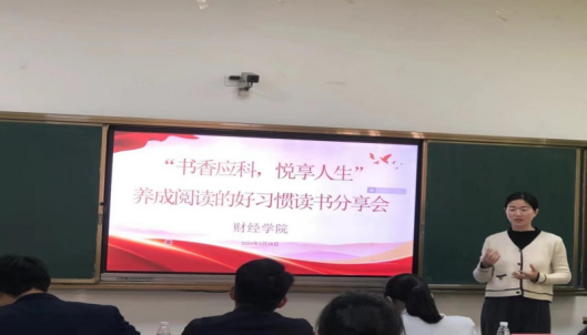 为提高我院师生的思想道德素质和科学文化素质,浓厚校园学习氛围,财经学院开展2024年“书香应科,悦享人生”养成阅读的好习惯图书阅读分享活动。活动于2024年3月28日在行知楼127教室开展,参与活动的领导和老师有:财经学院副院长漆圆方、图书与档案信息中心王格格、财经学院团总支副书记吴宜安、财经学院养成教育负责人钟敏、财经学院专职教师杨暘,以及各班级学生代表。