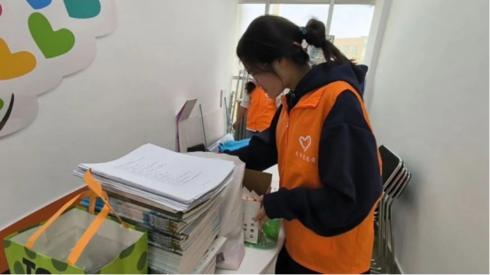 活动中期,志愿者们各司其职、分工合作,一部分志愿者将所有物资整理完毕之后,开始了物资的清点,确认物资的完整。随后,另一部分志愿者拿起拖把与扫帚,对爱心驿站卫生进行清扫。