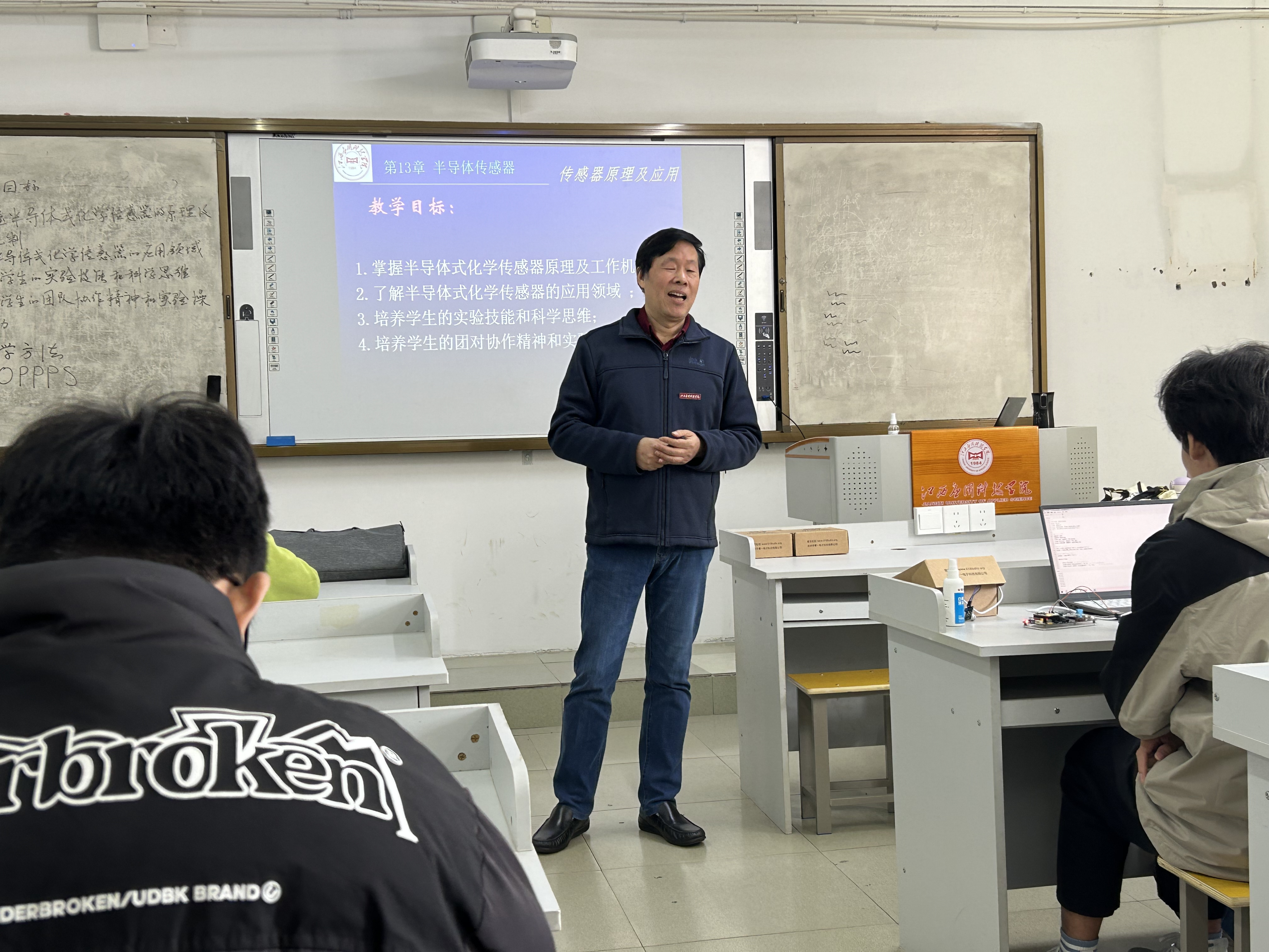 在此次公开课中,叶志清老师主讲了《传感器原理及应用》第十三章半导体式化学传感器。叶老师开篇通过展示一些实际应用场景,如空气质量监测、水质检测等,引起学生对半导体式化学传感器的兴趣。在课程中,主要对三个方面进行知识讲解:介绍半导体式化学传感器的原理和工作方式;解释半导体材料在化学气体检测中的应用;