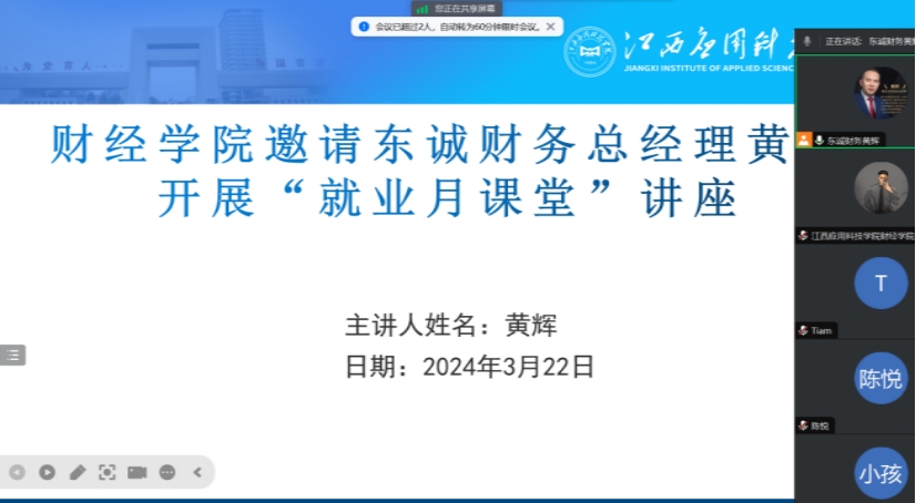 为贯彻落实就业育人理念,积极推动就业工作的深入开展,财经学院于2024年3月22日为2024届毕业生组织了一场精彩纷呈的线上就业育人讲座,在为学生们提供了丰富知识的同时,也解答了学生在就业方面的困惑。