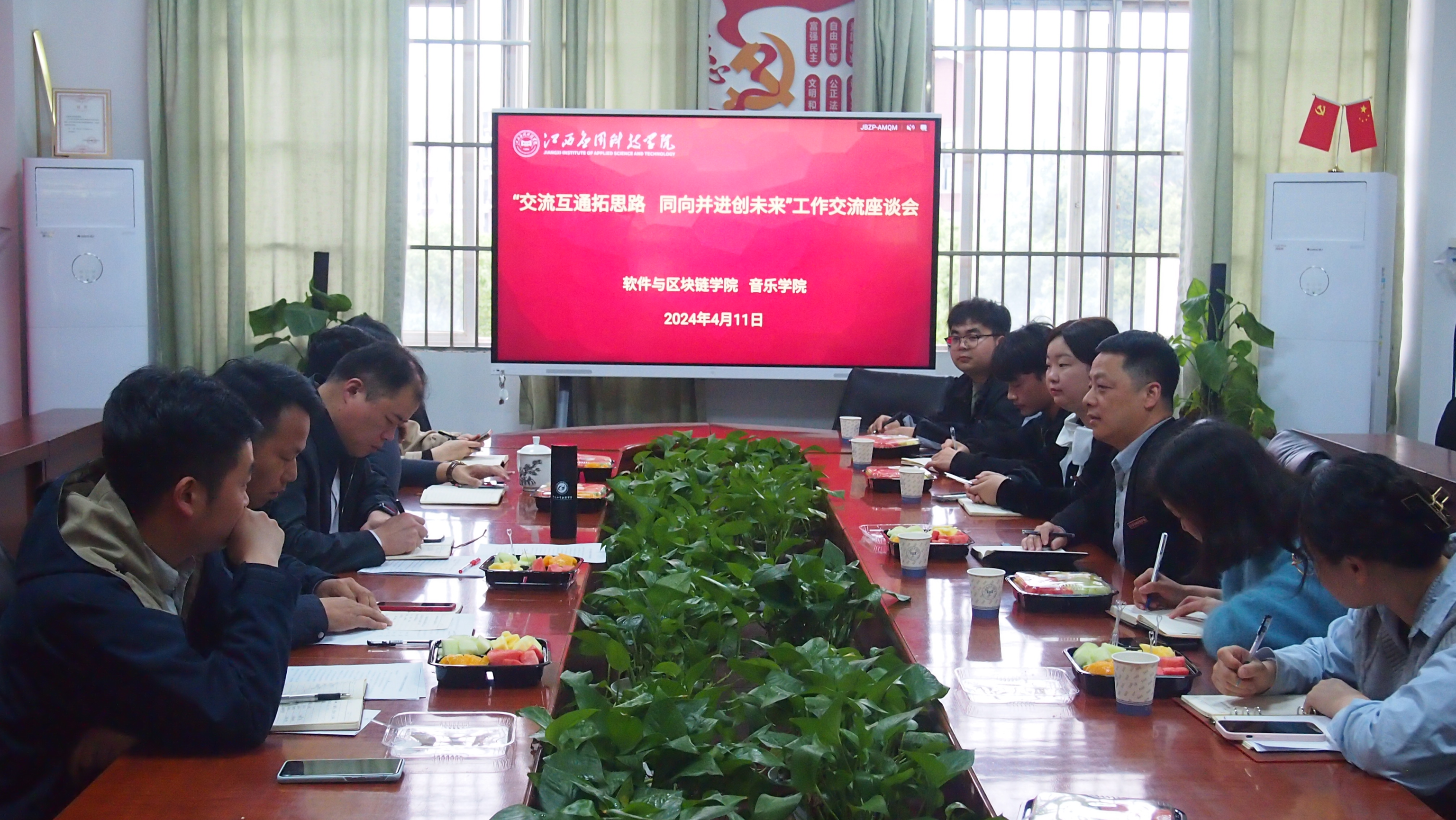 为进一步开拓工作发展新思路、探索工作新方法,加强学院之间的交流学习,积极探讨人工智能对教育教学的影响,4月11日,音乐学院院长许维东,党总支副书记、副院长唐燕琴一行来到软件与区块链学院开展工作交流座谈会。软件与区块链学院院长卞秀运,党总支书记、副院长卢胜勇,副院长韩阳及学院各科室负责人出席会议。