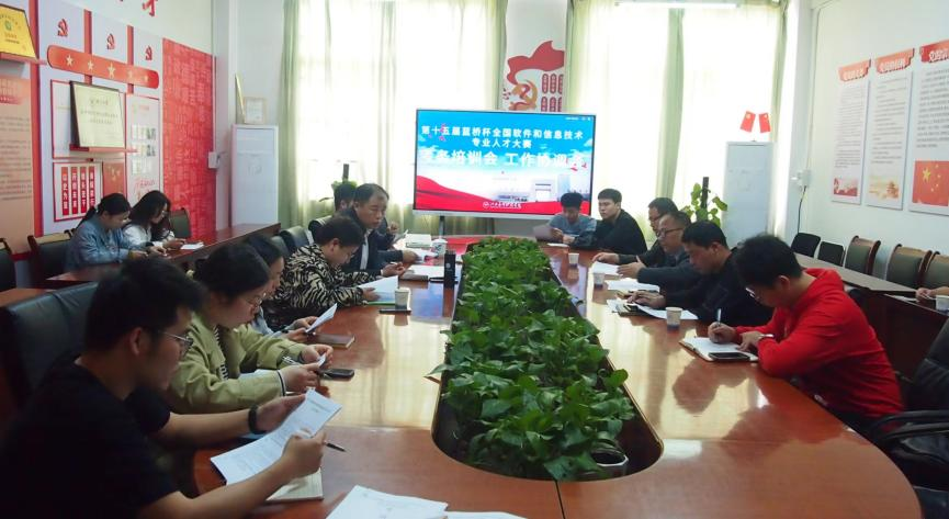 为做好第十五届蓝桥杯全国软件和信息技术专业人才大赛承办筹备工作,保障比赛顺利开展,4月12日,软件与区块链学院在三达楼210会议室召开大赛工作培训、协调会。创新创业学院院长、校团委书记张荆、人工智能学院院长李俊、人工智能学院常务副院长殷军、软件与区块链学院副院长韩阳出席会议,大赛考务人员、技术老师及监考老师参加会议。会议由软件与区块链学院院长卞秀运主持。