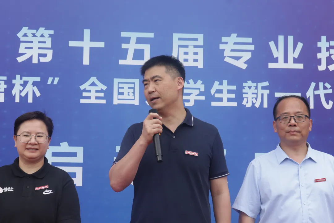 教师代表鄢林红提到“辰林杯”专业技能运动会是一个切磋技艺、展示水平的舞台,更是一个检验学习效果、提升学习能力的平台,并鼓励同学们勇敢参赛,向技术领域进军,在这个舞台上展示自己的才华和实力。她强调参赛选手要严格遵守纪律,发扬“吃苦耐劳、顽强拼搏”的精神,她希望选手们能够在比赛中秉持“胜不骄、败不馁”的态度,无论取得胜利还是遭遇挫折,都能保持谦逊与坚韧,不忘初心,勇往直前。